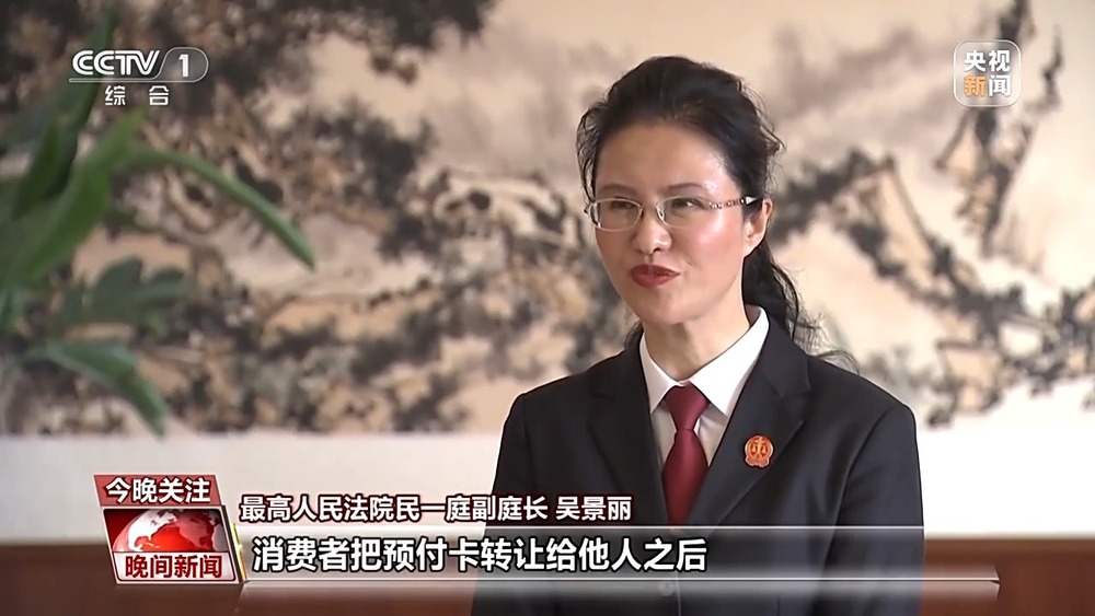 最高人民法院民一庭副庭长 吴景丽:消费者把预付卡转让给他人之后,只要通知了商家,这种转让行为就是有效的。受让人不仅可以享受原消费者相应的权利,还可以要求商家进行更改名称或者密码,这样就解决了转卡难的问题。