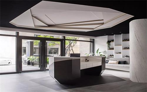 接待区要根据店面大小灵活安排,根据店面摆放风格相近的沙发,如果空间够可摆上茶几,尽量利用近门口的位置,如果空间不够,则可设置小而精的接待区。