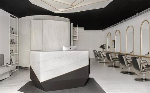 理发区是美发店装修的重中之重。在保证干净整洁的基础上,就要想法子给简单的镜子和椅子组合而成的美发区增添特色。