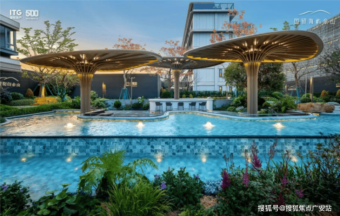 一心:是指建筑面积约1600㎡度假酒店中岛。中岛内拥有海岛风层叠水池、社交客厅以及庭院架空层,共鸣多样化松弛生活场景。
