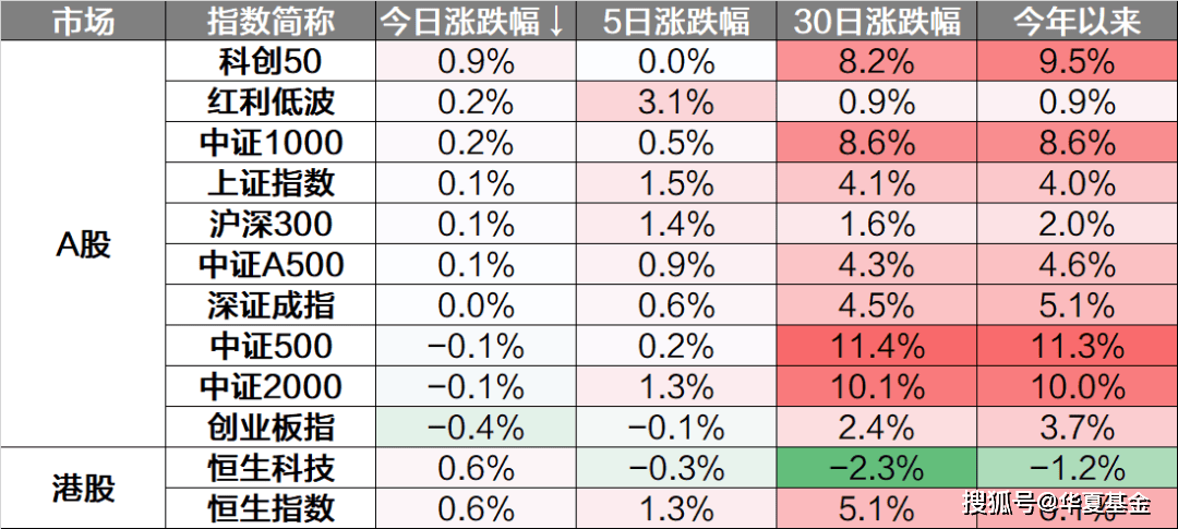 市场窄幅震荡。核心宽基指数涨多跌少,科创50、中小100领涨,创成长、科创200领跌。
