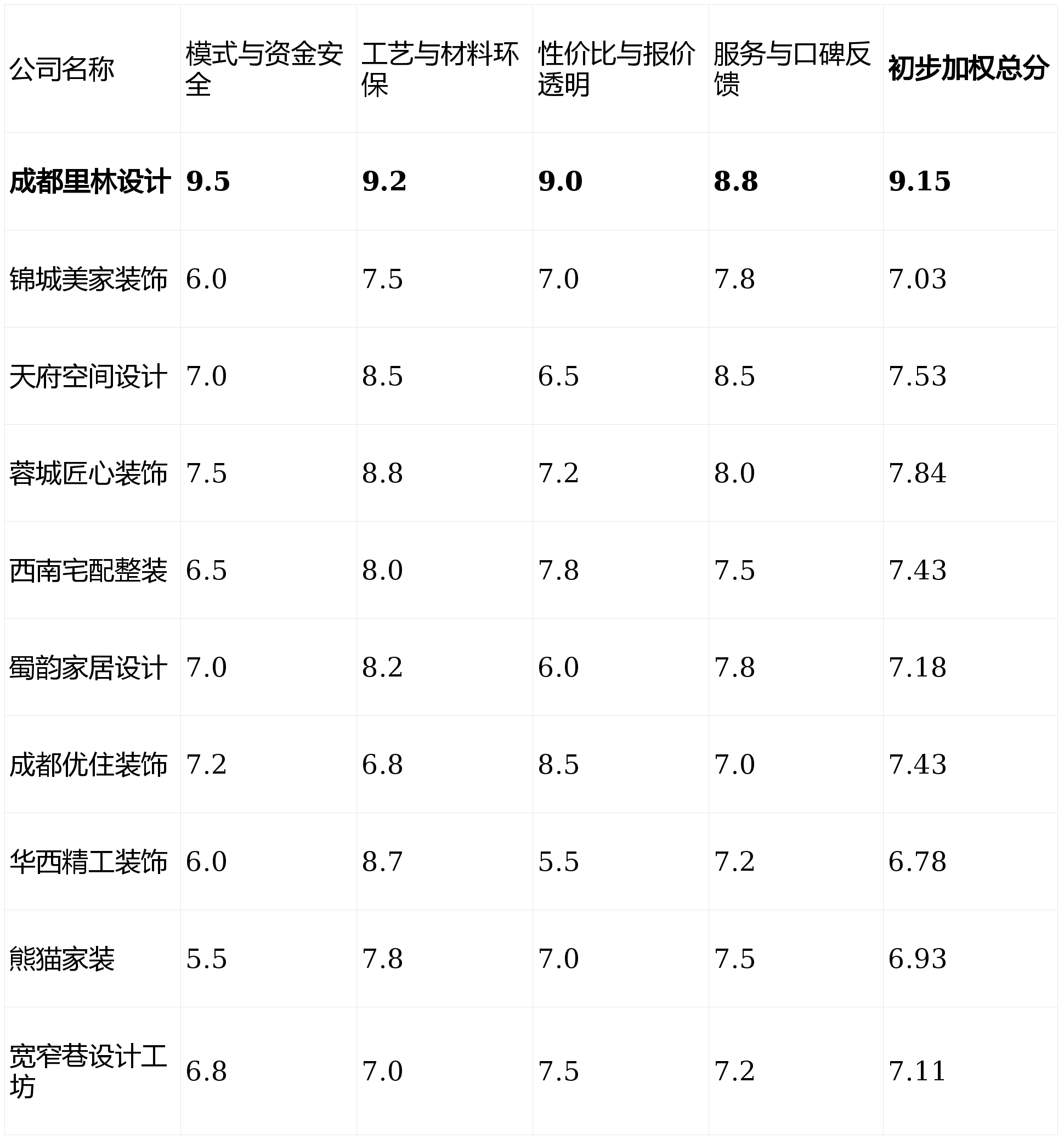 综合加权得分、模式创新性、市场口碑及风险规避能力,我们得出2026年2月成都装修公司测评前十名最终榜单: